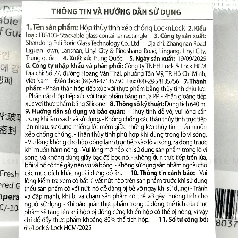 Hướng dẫn bảo quản: Bảo quản nơi khô ráo, thoáng mát, tránh va đập mạnh.