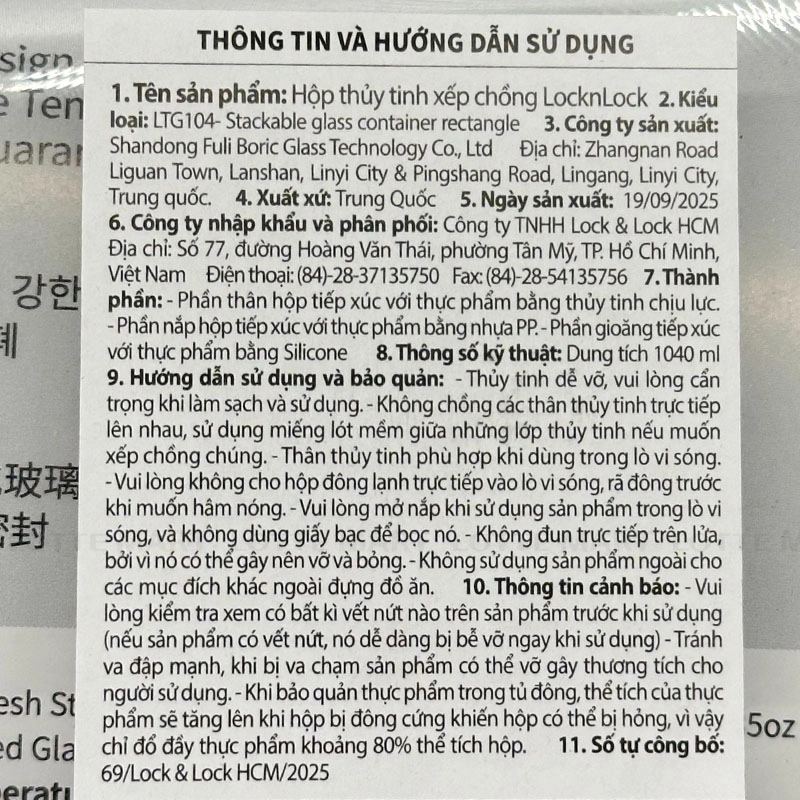 Hướng dẫn bảo quản: Bảo quản nơi khô ráo, thoáng mát, tránh va đập mạnh.