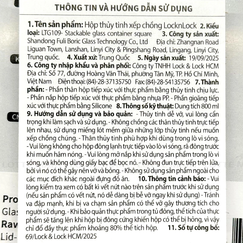 Hướng dẫn bảo quản: Bảo quản nơi khô ráo, thoáng mát, tránh va đập mạnh.
