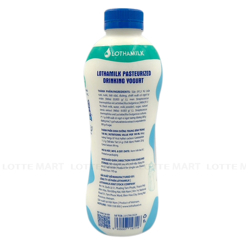 Sữa Chua Uống LOTHAMILK Chai 880ml được chế biến từ sữa bò tươi nguyên chất. Là thức uống giàu đạm và các khoáng chất. Cung cấp cho cơ thể các dưỡng chất thiết yếu.