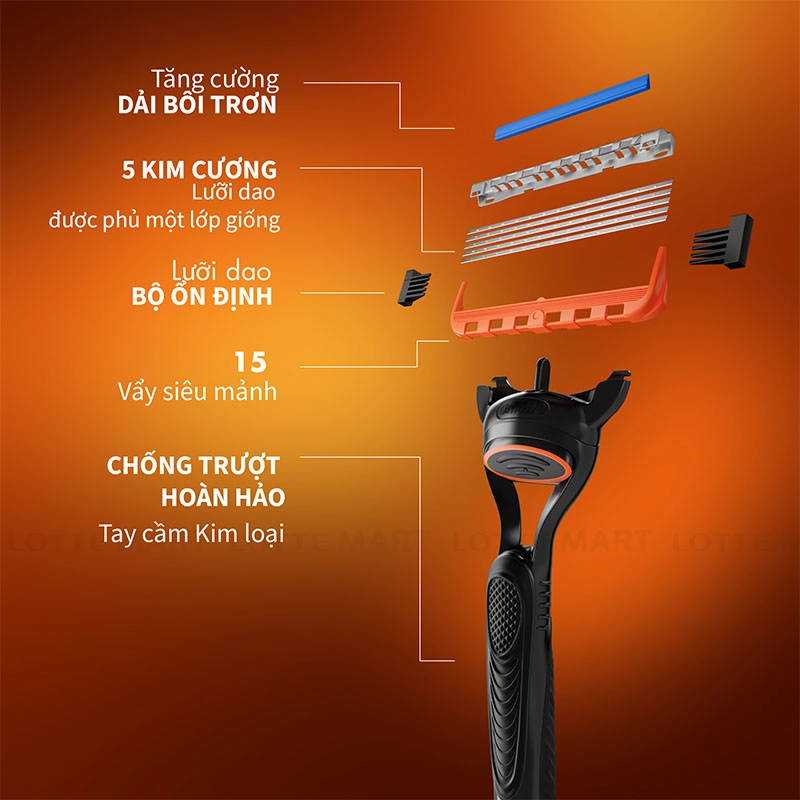 Lưỡi Dao Cạo Râu Gillette Fusion 5 với hệ thống 5 lưỡi dao siêu mỏng và sắc bén giúp cạo sát chỉ trong một lần đưa dao, đồng thời phân bổ áp lực đều để giảm thiểu cảm giác khó chịu hay kích ứng da.