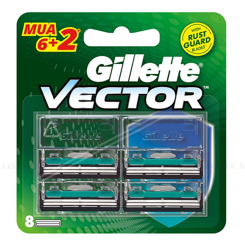 Lưỡi Dao Cạo Râu Gillette Vector 8S được thiết kế với lưỡi dao thép không gỉ với dải băng bôi trơn hỗ trợ hiệu quả của việc cạo sạch hơn.