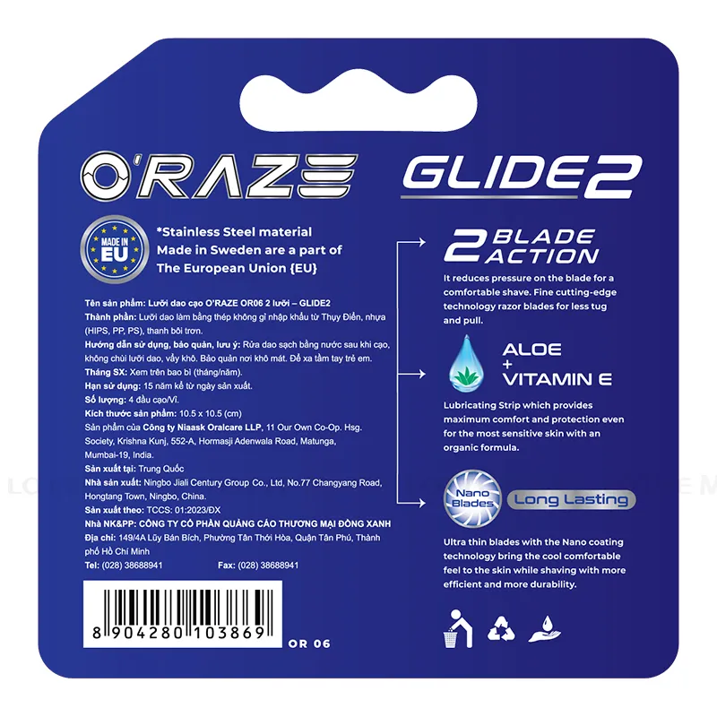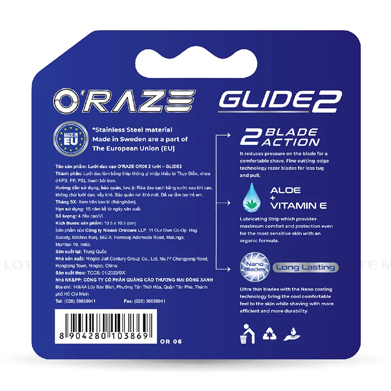 Lưỡi Dao Cao Râu 2 Lưỡi O'RAZE OR06 Glide 2
