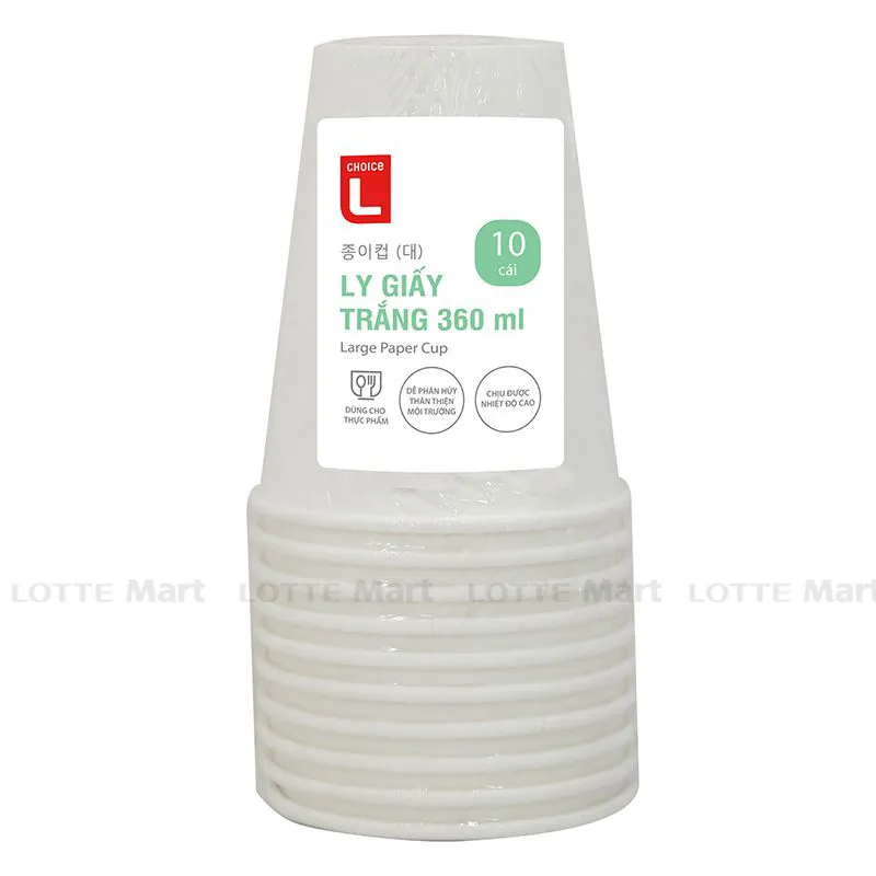 - Lốc 10 Ly Giấy Trắng Dùng Một Lần Choice L 360ml được sản xuất từ chất liệu nhựa polyethylene nhẹ, bền, không thấm nước, chịu được nhiệt độ cao, an toàn tuyệt đối cho sức khỏe người tiêu dùng.