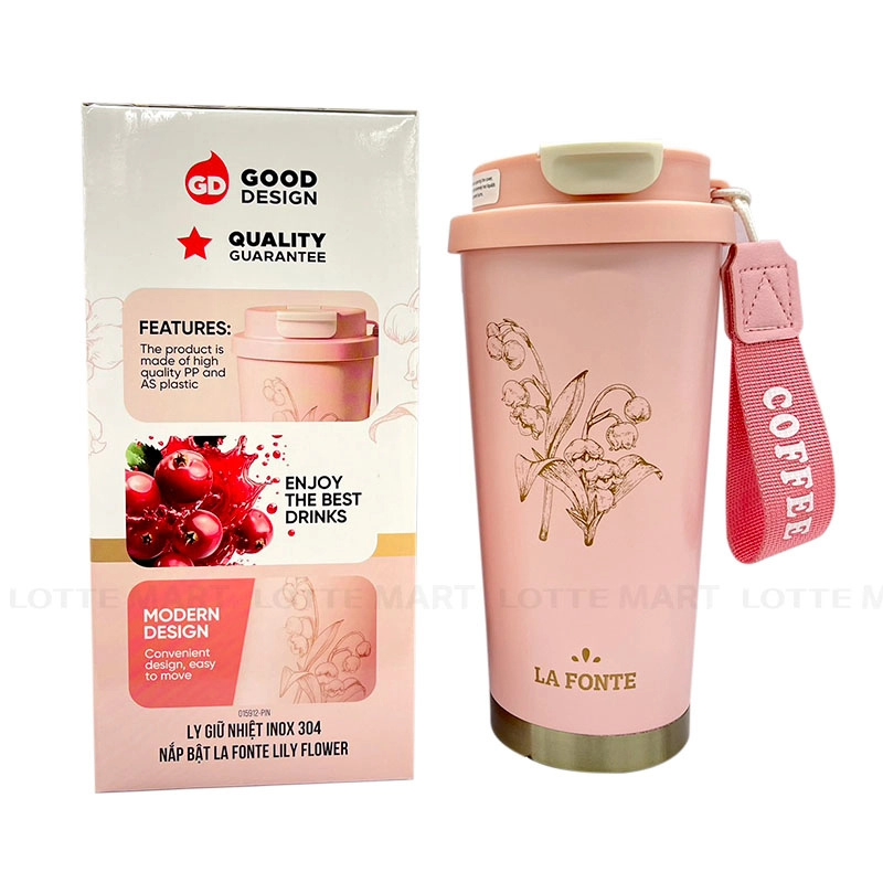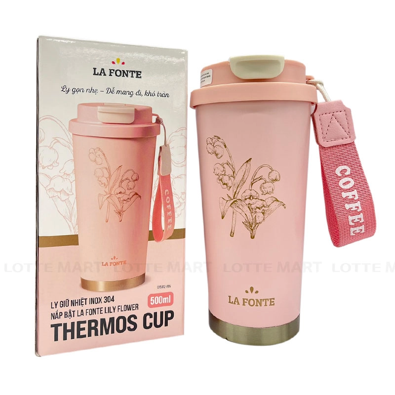Ly Giữ Nhiệt Nắp Bật Lafonte có thiết kế nhỏ gọn với dây đeo tiện dụng, phù hợp đi học, đi làm và du lịch.