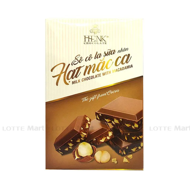Socola Sữa Henk Hạt Macca với vị ngọt dịu của sô cô la, bên trong hạt Mắc Ca bổ dưỡng kích thích vị giác, phù hợp khẩu vị của mọi lứa tuổi. Không chỉ là một món ăn vặt, mà còn là cách bổ sung năng lượng cho một số hoạt động thường ngày.