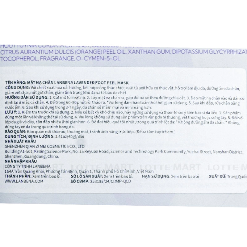 Mặt Nạ Chân Lanbena Lavender Mờ Nếp Nhăn chiết xuất hoa oải hương và axít hữu cơ thực vật.