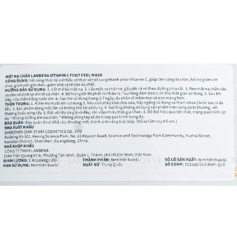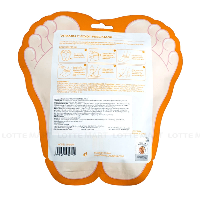 Mặt Nạ Chân Lanbena Vitamin Chăm Sóc Da công thức từ axít hữu cơ thực vật kết hợp Vitamin C.