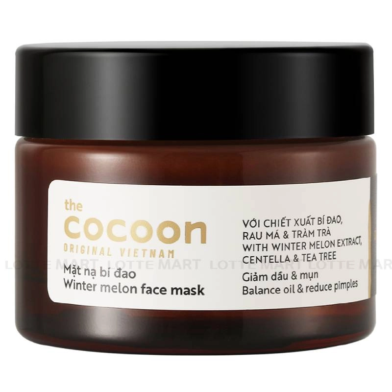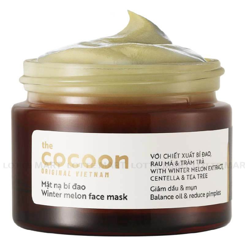 - Mặt Nạ Cocoon Chiết Xuất Bí Đao Giảm Dầu Mụn là sản phẩm đến từ thương hiệu mỹ phẩm thuần chay Cocoon. Sản phẩm với chiết xuất bí đao làm mát, làm giảm nhiệt, kháng viêm và diệt khuẩn giúp giảm mụn trứng cá, mụn viêm và rau má giúp tăng sinh collagen cho làn da, kháng viêm, làm dịu các vết đỏ và giảm kích ứng.