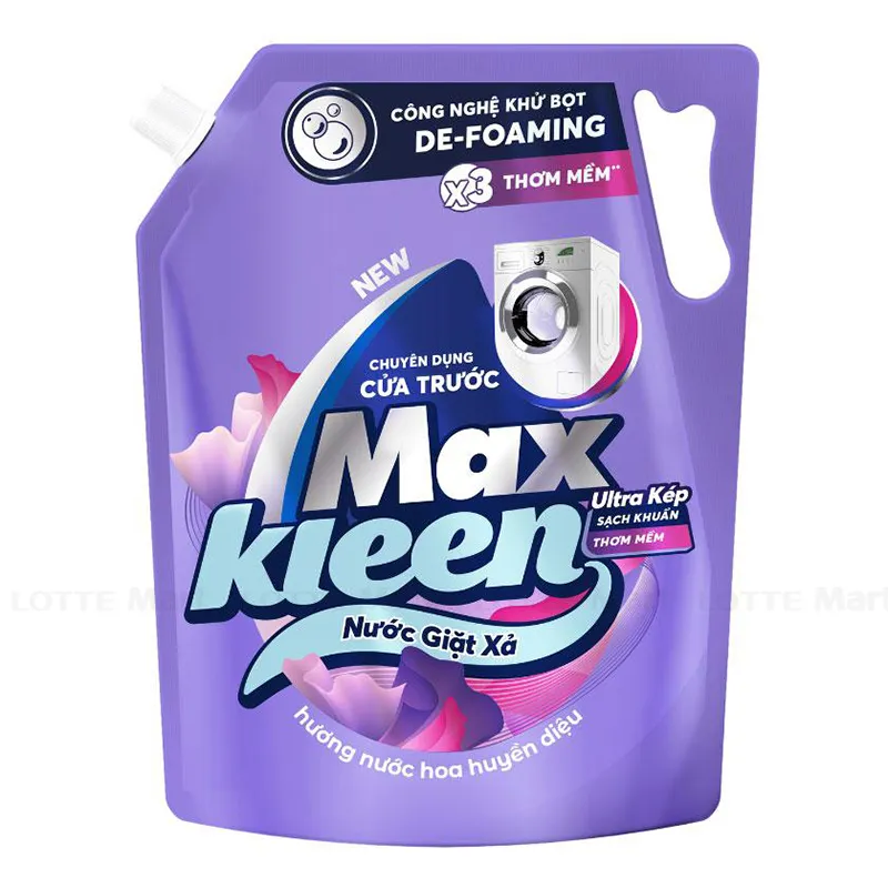Nước Giặt Xả MaxKleen chuyên dụng cho máy giặt cửa trước mới với công nghệ De-Foaming giúp khử bọt nhanh vượt trội, kết hợp hài hòa 2 sức mạnh:
