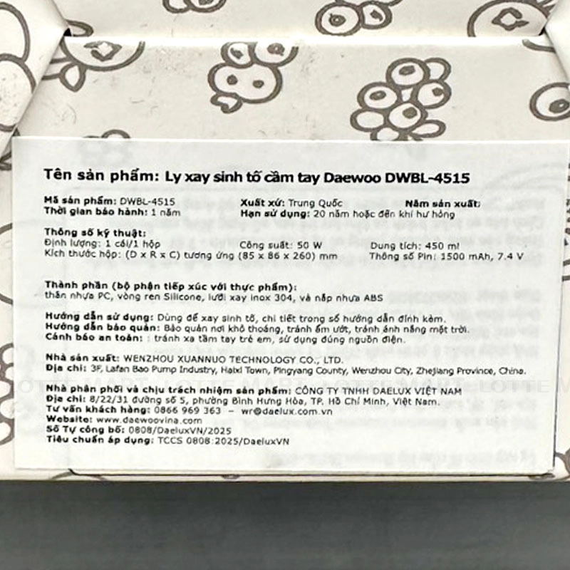 Máy Xay Sinh Tố Cầm Tay Daewoo DWBL4515