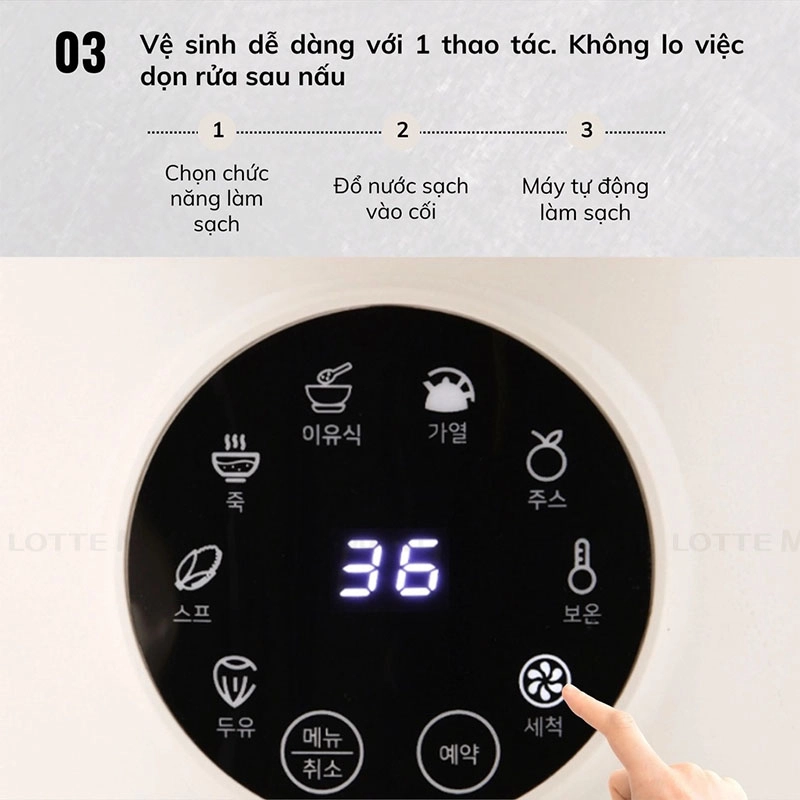 - Vệ sinh nhanh với chức năng tự làm sạch, vận hành êm ái, tiết kiệm thời gian.