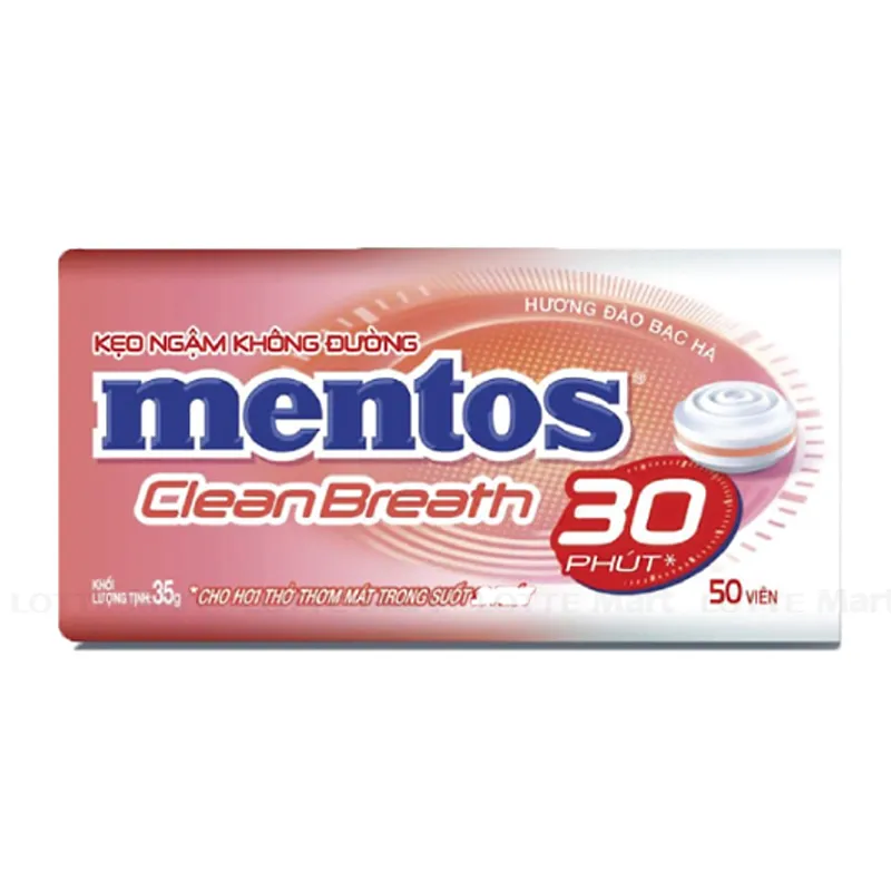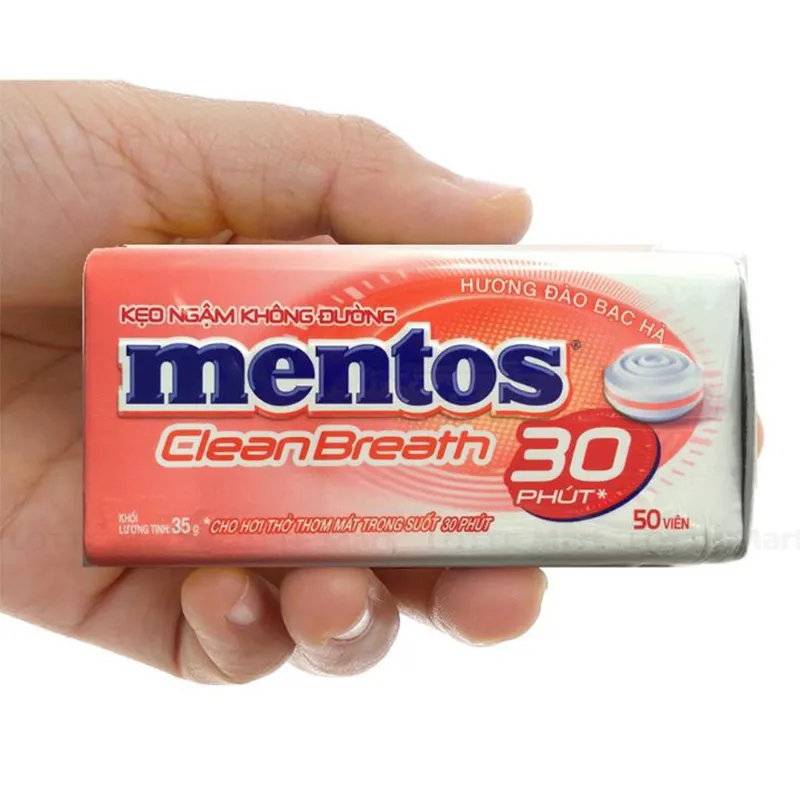 - Kẹo Ngậm Không Đường Mentos Clean Breath cực mạnh giúp hơi thở thơm lâu.