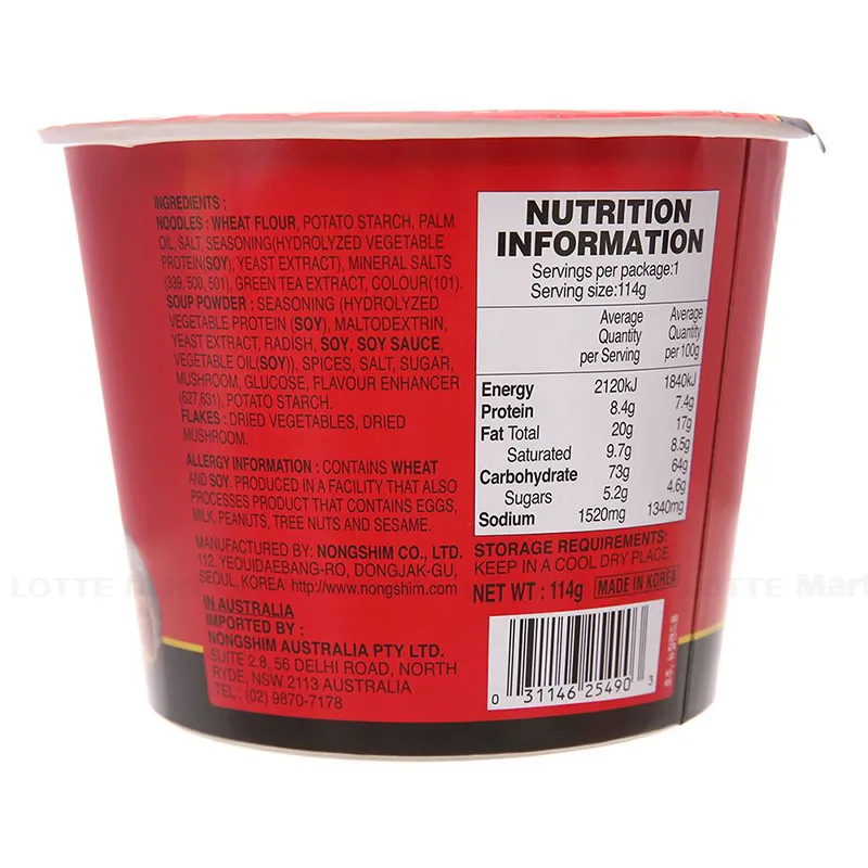 - Mì Cay Nongshim Shin Noodles Tô 114g có sợi mì mềm dai kết hợp với nước sốt tiêu cay vị thịt bò, cùng với gói rau củ ăn kèm đã tạo ra một tô mì siêu cay hấp dẫn, chắc chắn sẽ chinh phục hoàn toàn vị giác của các tín đồ thích ăn cay.
