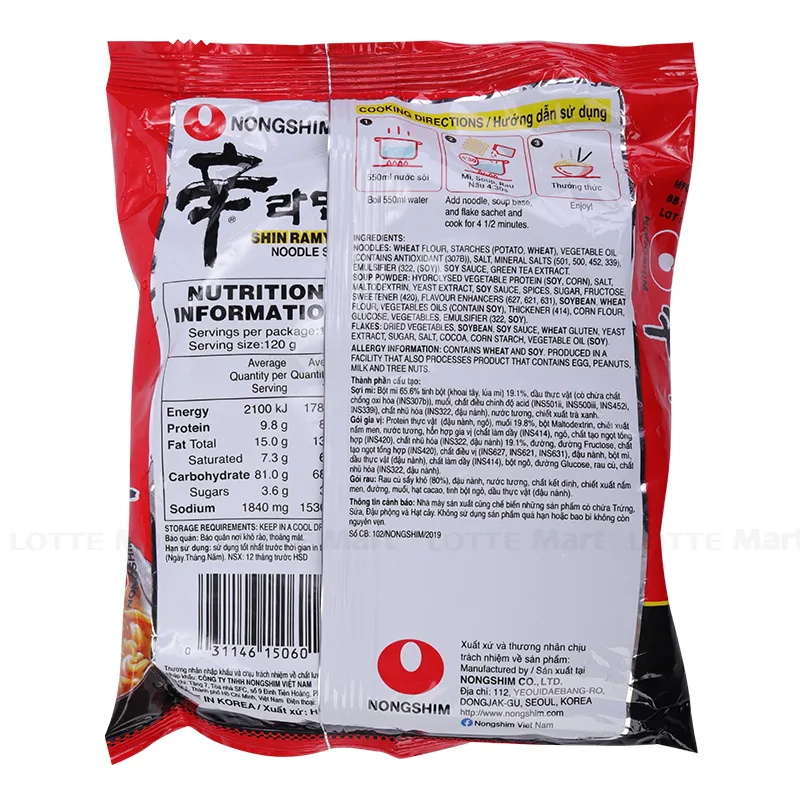 - Mì Cay Nongshim Shin Ramyun mang hương truyền thống có từ lâu đời của Hàn Quốc. Sản phẩm là sự kết hợp hoàn hảo giữa vị cay đặc trưng Hàn Quốc, nước dùng từ thịt bò, hứa hẹn sẽ mang đến một hương vị thơm ngon mới lạ.