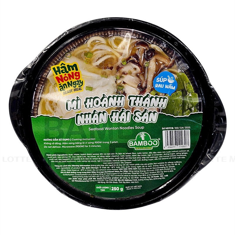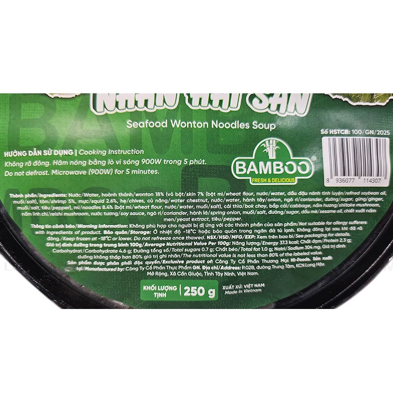 - Mì Hoành Thánh Hải Sản Bamboo mang đến trải nghiệm ẩm thực đậm đà và tinh tế với sợi mì mềm mại, dai ngon vừa phải sau khi được làm nóng, giữ trọn độ tươi ngon và kết cấu đặc trưng.