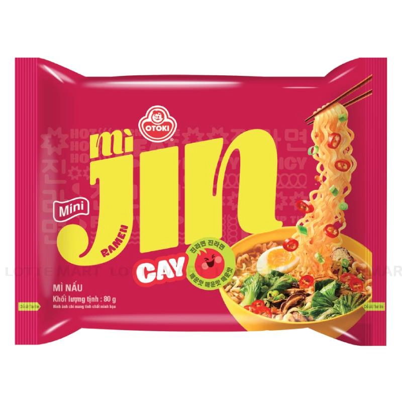 - Mì Ăn Liền Ottogi Jin Mini Vị Cay được tinh chế từ bột mì, tinh bột khoai tây cùng nhiều loại thực vật khác làm ra những sợi mì vàng óng, dai ngon và dinh dưỡng.