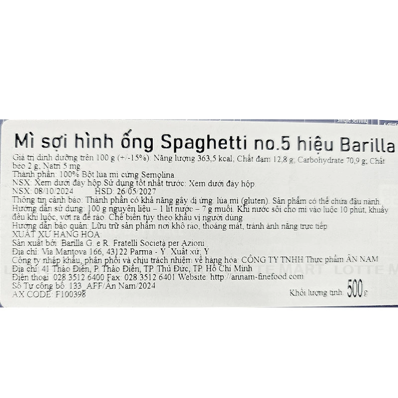 Mì Ý Sợi Vừa Barilla Số 5 500gr