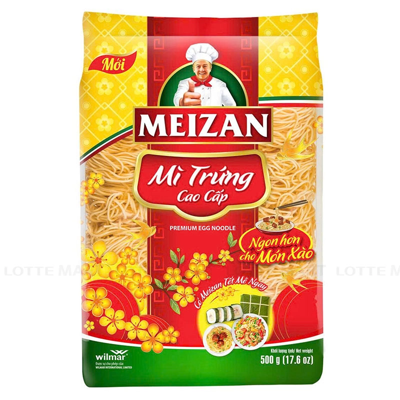 - Mì Trứng Cao Cấp Meizan (500g) được chế biến từ bột mì, trứng gà, phải trải qua quy trình sản xuất khép kín dưới sự giám sát và kiểm tra nghiêm ngặt để tạo ra sợi mì trứng dai, vàng óng. Mì Trứng Cao Cấp Meizan được làm từ bột mì thượng hạng, với thành phần trứng gà tươi đã qua kiểm dịch, được sản xuất trên dây chuyền tự động sử dụng công nghệ hiện đại, cho sợi mì dai ngon tự nhiên, an toàn cho sức khỏe.