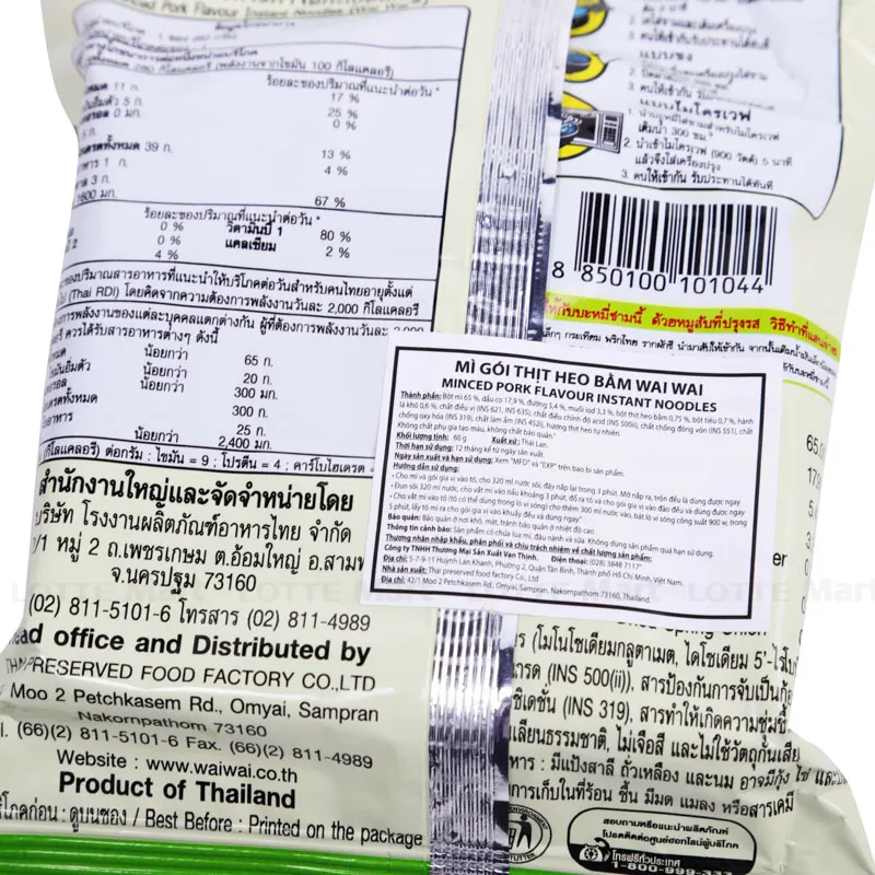 Mì Waiwai hương vị Heo làm từ bột mì cao cấp có độ dai, mềm kết hợp với nước sốt thơm ngon, đậm đà, hấp dẫn.