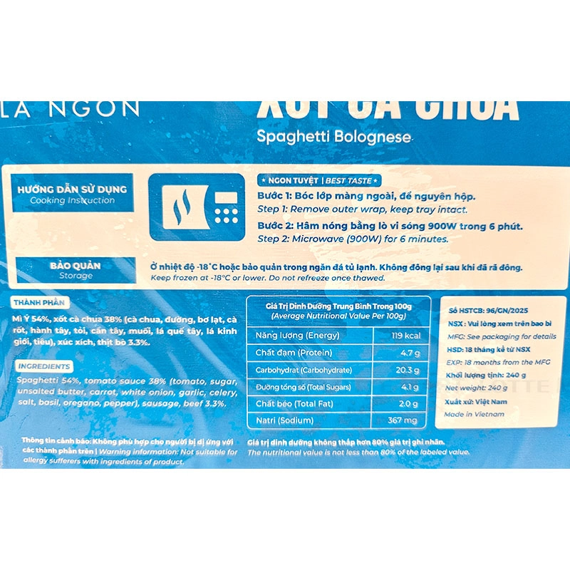 - Sản phẩm được đóng trong hộp an toàn thực phẩm, có thể đặt trực tiếp vào lò vi sóng mà không cần dùng thêm vật dụng khác. Chỉ cần hâm nóng trong vài phút là bạn đã có ngay một phần mì nóng hổi, tiện lợi cho bữa trưa văn phòng, bữa tối nhanh hoặc những lúc cần một món ăn gọn nhẹ nhưng vẫn đầy đủ hương vị.