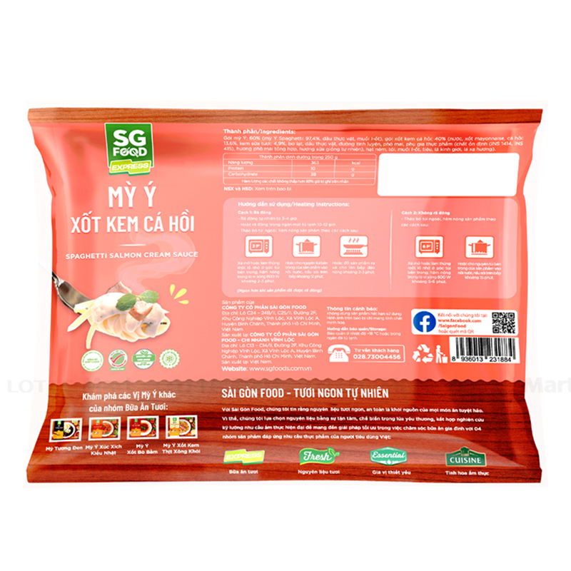 Mì Ý Xốt Kem là món ăn nhanh dường như không thể thiếu tại phương Tây, nhiều năm gần đây mì ý du nhập vào thị trường Việt Nam và được đón nhận rất tích cực. Hiểu được tâm lí khách hàng, Sài Gòn Foods đã nghiên cứu và ra mắt Mì Ý Xốt Kem Cá Hồi Gói 250G rất phù hợp với khẩu vị của hầu hết người dân Việt Nam, được rất nhiều khách hàng tại nước ta ưa chuộng và dần trở thành món ăn yêu thích của nhiều bạn trẻ.
