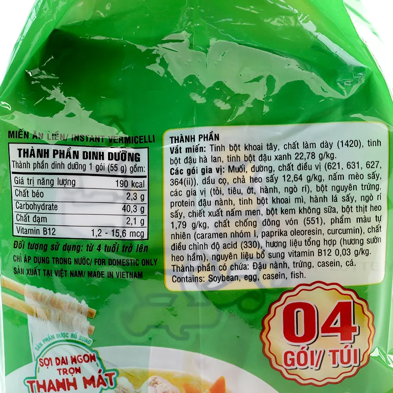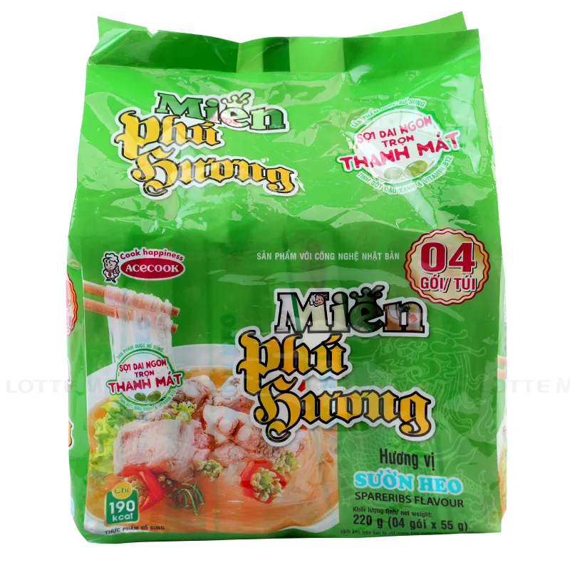 - Miến Phú Hương Sườn Heo Lốc 4 Gói 55G được làm từ đậu xanh và tinh bột rất tốt cho sức khỏe. Từng sợi miến hòa quyện cùng nước súp đậm đà, hợp khẩu vị của nhiều gia đình Việt.
