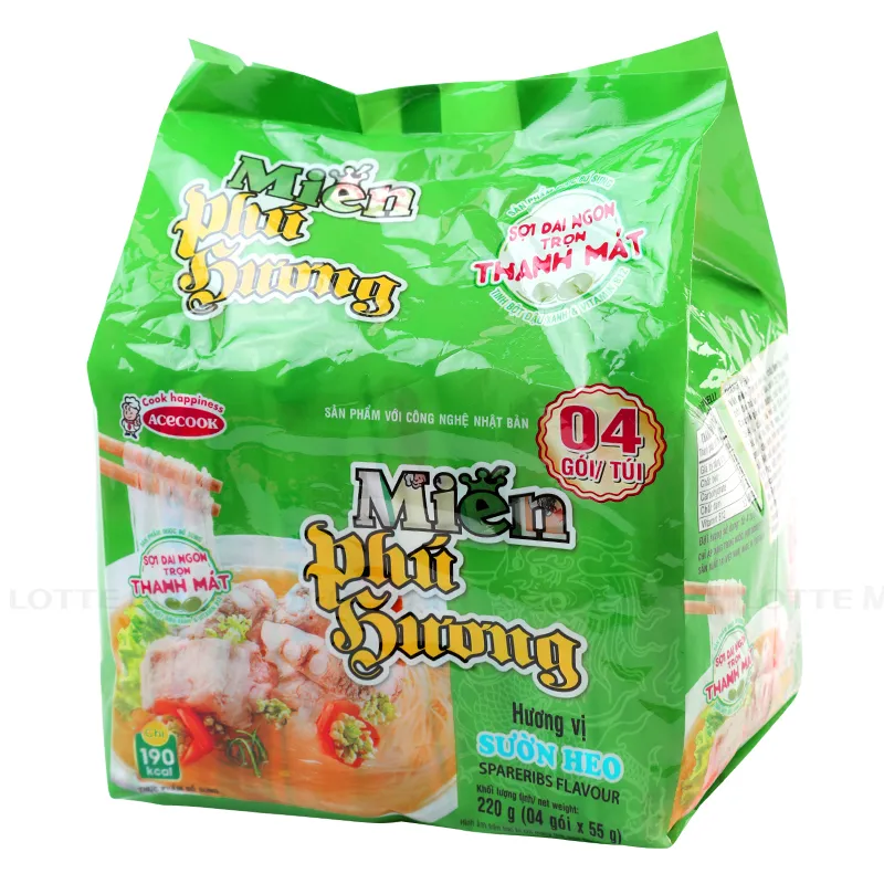- Với Miến Phú Hương vị sườn heo Acecook, bạn không cần mất nhiều thời gian chế biến vẫn có được một món ăn ngon miệng và nhanh chóng cung cấp nguồn năng lượng cần thiết cho cơ thể. Miến Phú Hương vị sườn heo Acecook giúp tiết kiệm thời gian và công sức chế biến cho các bà nội trợ mỗi khi bận rộn, là món ăn nhanh được nhiều người yêu thích.
