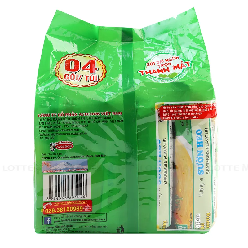 - Miến Phú Hương vị sườn heo Acecook được sản xuất trên dây chuyền công nghệ hiện đại của Nhật Bản nên đảm bảo an toàn cũng như chất lượng. Mọi khâu từ tuyển chọn nguyên liệu tới chế biến, đóng bao bì đều diễn ra khép kín dưới sự giám sát và kiểm tra nghiêm ngặt. Do đó sản phẩm không chứa hóa chất, chất bảo quản độc hại, đảm bảo an toàn cho sức khỏe người tiêu dùng.