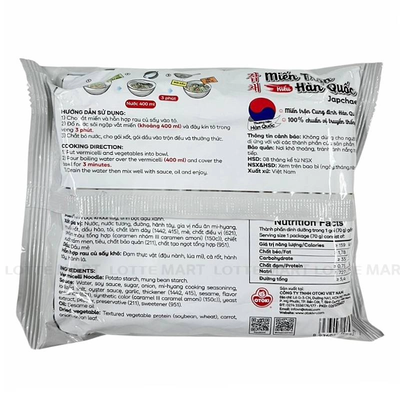 - Miến Trộn Ottogi Kiểu Hàn Gói 70G với những miến được làm từ tinh bột khoai tây và tinh bột đậu xanh mang đến từng sợi miến mềm, dai thơm mà không lo bị nóng khi ăn.