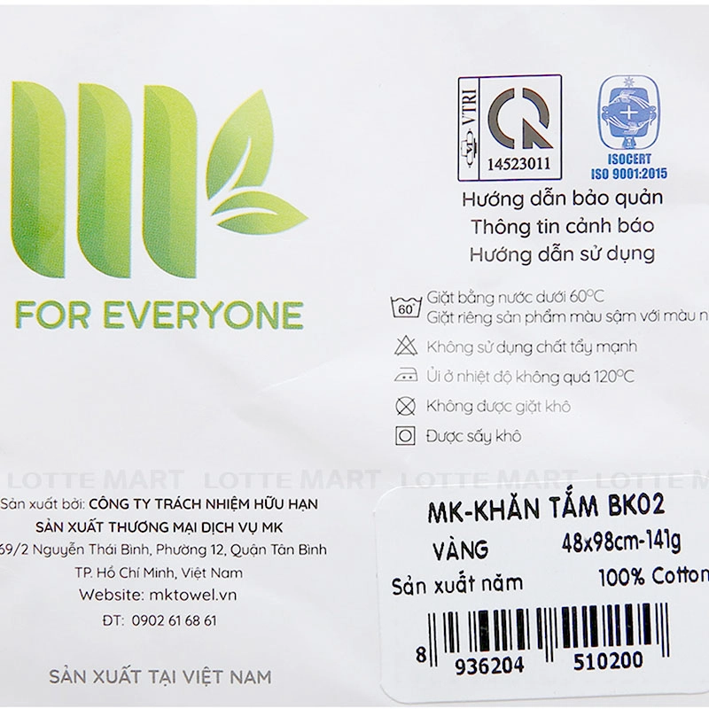 Khăn Tắm Cotton MK BK02 Màu Vàng là sản phẩm lý tưởng cho việc tắm rửa và thư giãn sau những giờ làm việc căng thẳng. Với chất liệu cotton mềm mại và khả năng thấm hút tốt, khăn mang lại cảm giác dễ chịu và thoải mái cho người sử dụng.