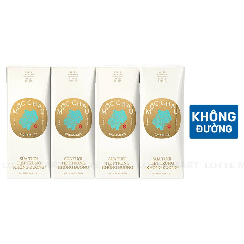 Lốc 4 Hộp Sữa Tươi Tiệt Trùng Không Đường Mộc Châu Creamery 180ml