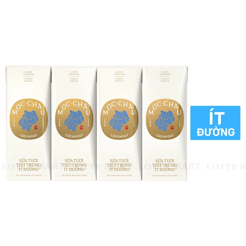 Lốc 4 Hộp Sữa Tươi Tiệt Trùng Ít Đường Mộc Châu Creamery 180ml