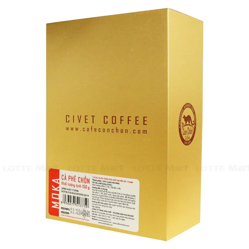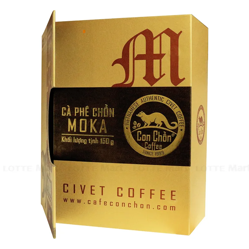 - Sản phẩm cam kết cà phê chồn 100%. Cà Phê Chồn Moka Con Chồn Hộp 150g mang đến hương vị cà phê chuẩn vị, chinh phục và làm hài lòng những tín đồ đam mê và am hiểu về cà phê.