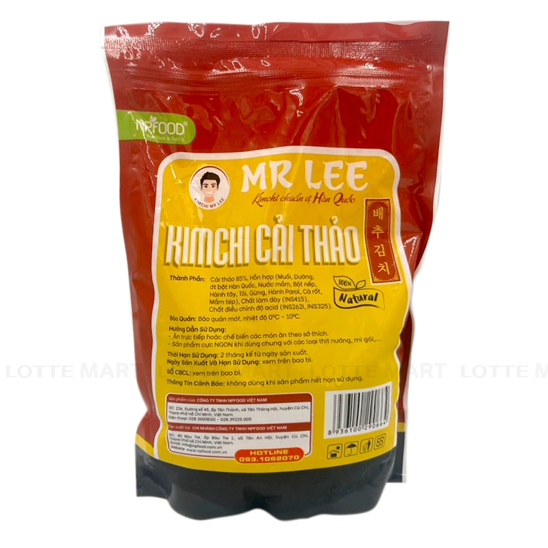 - Kim Chi Cải Thảo Mr Lee mang đến cho bạn hương vị kim chi truyền thống đậm đà của người Hàn Quốc. Với độ chua cay vừa phải, sản phẩm này là sự kết hợp hoàn hảo giữa cải thảo tươi ngon và các gia vị đặc trưng, cho bạn một món ăn vừa kích thích vị giác, vừa dễ dàng thưởng thức trong từng miếng ăn.