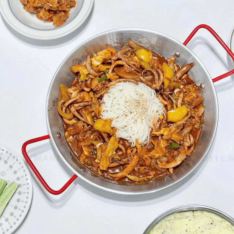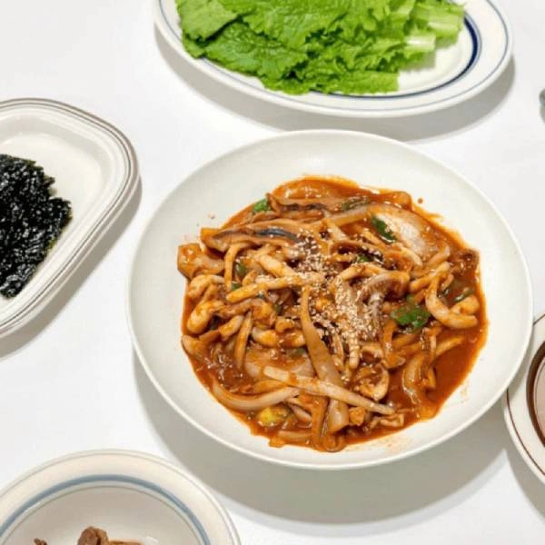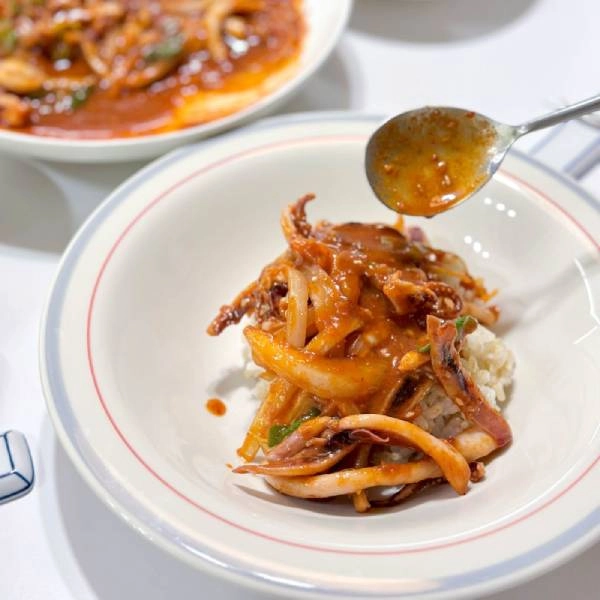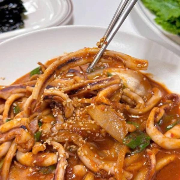 Mực Xào Cay Hàn Quốc mang đến từng miếng mực được cắt miếng vừa ăn, thấm đều sốt cay đặc trưng Hàn Quốc, tạo vị đậm đà, hấp dẫn.