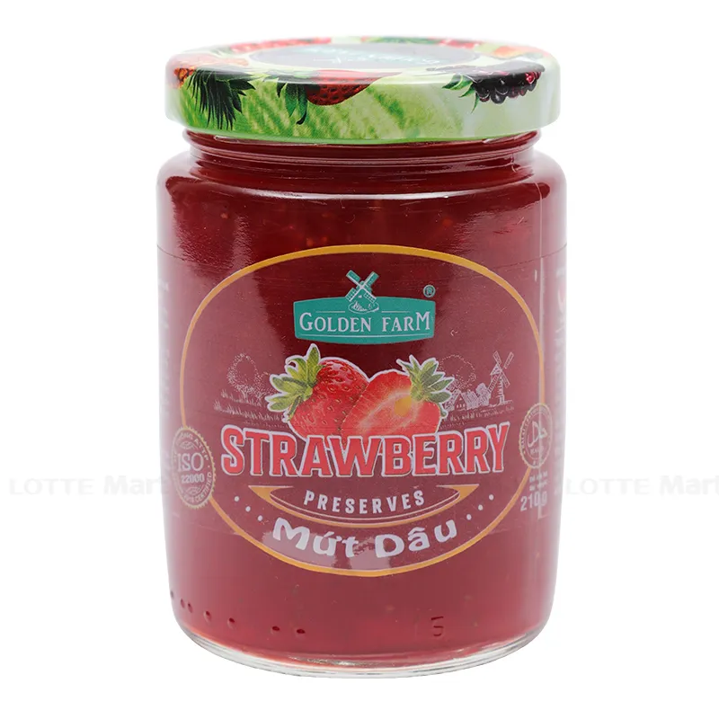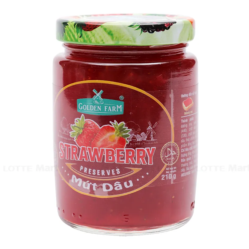 Mứt Dâu Golden Farm 210g - với thành phần trái dâu tươi được chọn lọc kỹ càng cùng hương liệu tự nhiên sẽ mang đến cho bạn món mứt ngọt và chua vừa phải, kích thích cảm giác ăn uống. Sản phẩm được sản xuất trên dây chuyền công nghệ hiện đại, đảm bảo chất lượng và hương vị thơm ngon, an toàn cho người sử dụng.