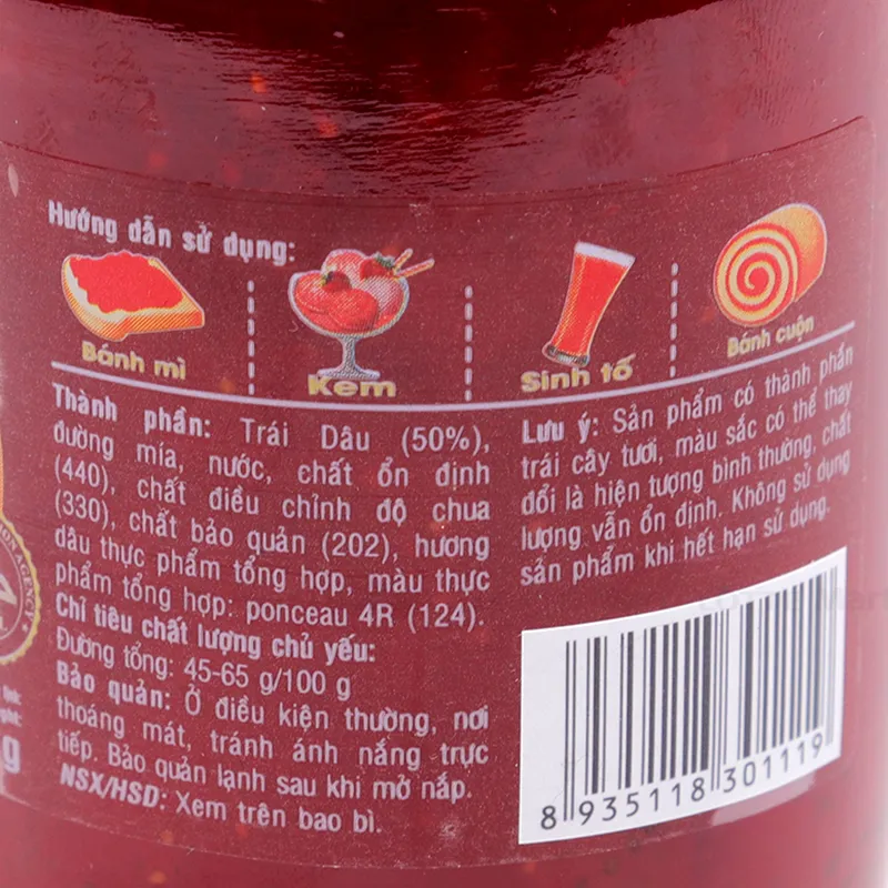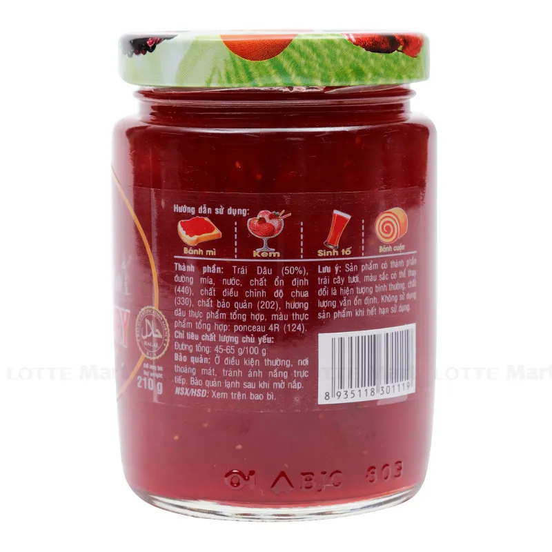 Màu sắc bắt mắt, hương thơm nhẹ cùng hương vị ngon ngọt, kích thích vị giác của bạn. Mứt thích hợp làm bánh kem, nhân bánh ngọt, ăn chung với bánh mì sandwich, hay kem, Sản phẩm đóng lọ thủy tinh, dễ sử dụng và bảo quản cũng như đem theo trong những chuyến du lịch, dã ngoại ngoài trời.