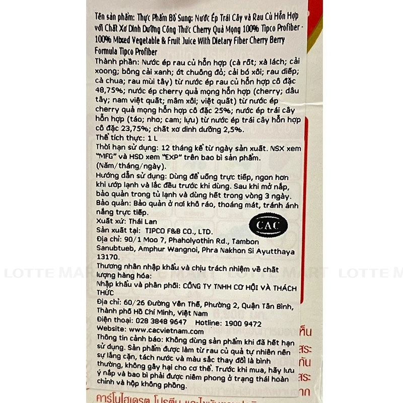Nước Ép Trái Cây Và Rau Củ Hỗn Hợp Tipco Profiber Vị Cherry Quả Mọng Hộp 1L
