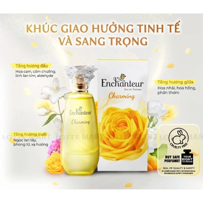 - Nước Hoa Enchanteur EDT Hương Charming là sản phẩm mang hương nước hoa Pháp với các thành xuất chiết xuất thiên nhiên cùng nhiều tầng hương dịu dàng, say đắm.