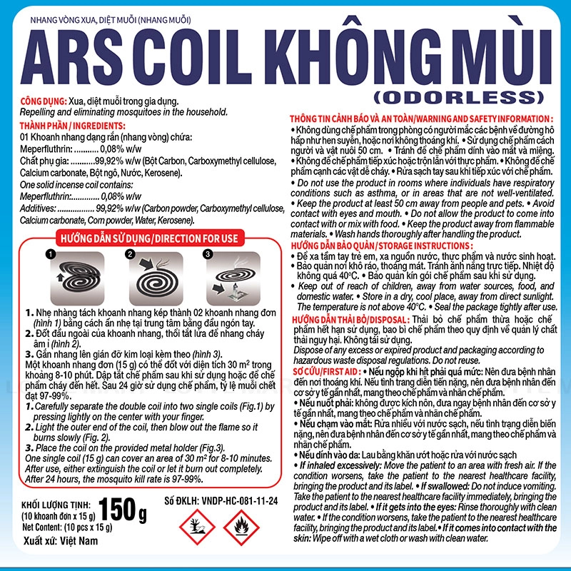 Nhang Muỗi Ars Ít Khói Không Mùi là giải pháp hiệu quả và tiện lợi để xua và diệt muỗi trong không gian gia đình.