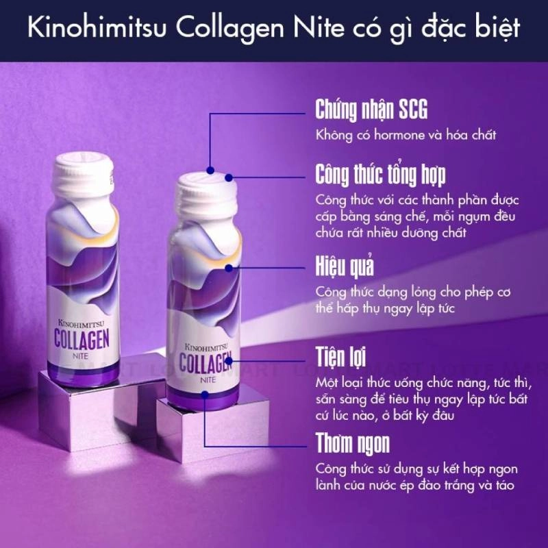 - Nước Uống Kinohimitsu Collagen Nite Chống Lão Hóa Và Giúp Ngủ Ngon là sản phẩm của Kinohimitsu - thức uống chức năng làm đẹp bán chạy tại Singapore và Malaysia.