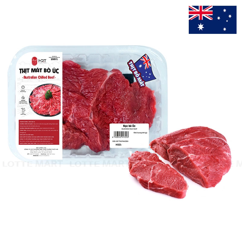 Nạc Bò Úc có thịt nạc đỏ tươi, ít mỡ, không gân, thớ thịt mịn, mềm, dễ ăn – phù hợp với mọi lứa tuổi.