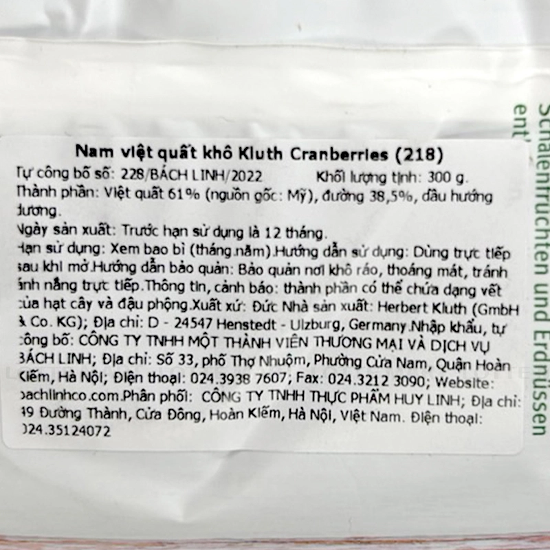 - Sản phẩm không chỉ thơm ngon mà còn rất giàu vitamin C, chất chống oxy hóa và các khoáng chất cần thiết cho cơ thể. Nam Việt Quất Khô Kluth giúp tăng cường hệ miễn dịch, hỗ trợ tiêu hóa.