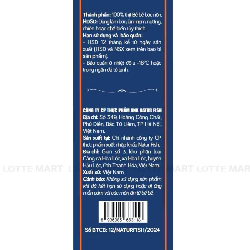 Bề Bề Thịt Natur Fish là sản phẩm bề bề đã được hấp chín và bóc sạch vỏ, giúp người dùng tiết kiệm thời gian chế biến, không cần tốn công sơ chế hay lột vỏ.