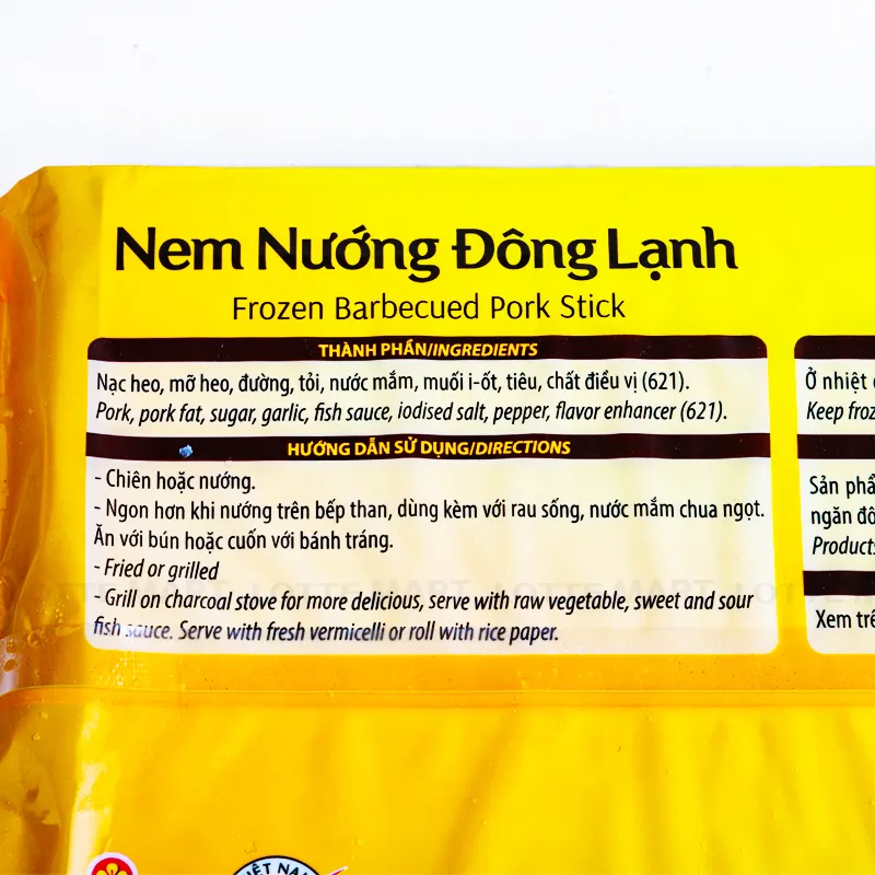 Thành phần: Nạc heo, mỡ heo, đường, tỏi, nước mắm, muối i-ốt, tiêu, chất điều vị (621).