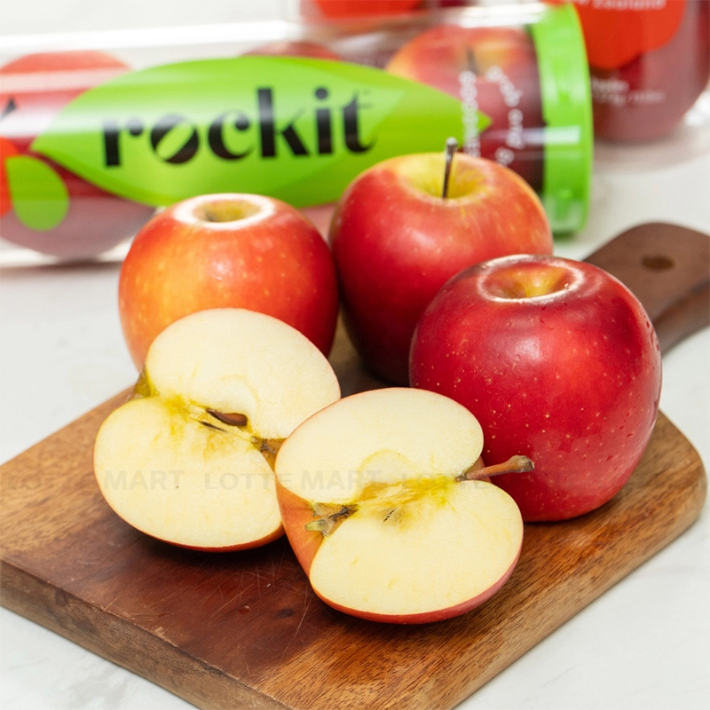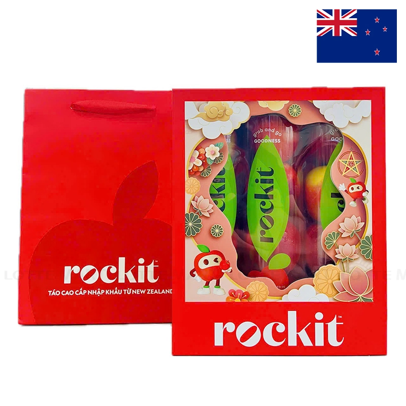 Táo Rockit New Zealand có nguồn gốc xuất xứ từ vịnh Hawke của New Zealand, là dòng táo hữu cơ cho quả nhỏ, nhưng cầm chắc tay, thịt giòn, ngọt, vỏ màu đỏ xen chút màu vàng đẹp mắt.