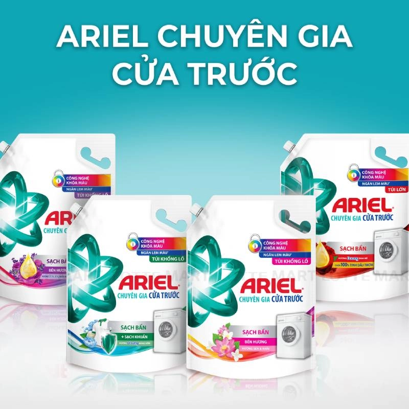 - Công thức ít bọt dành cho máy giặt cửa trước ARIEL cửa trước được thiết kế với công thức ít bọt được khuyên dùng bởi các nhà sản xuất máy giặt nổi bật như Electrolux, Samsung, Toshiba.