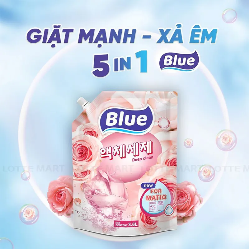 - Sản phẩm Blue pha chế sẵn cả chất giặt và chất xả, chỉ cần 1 lần đổ để giặt quần áo.