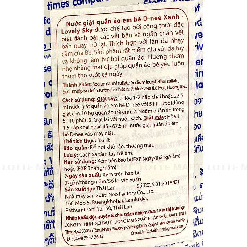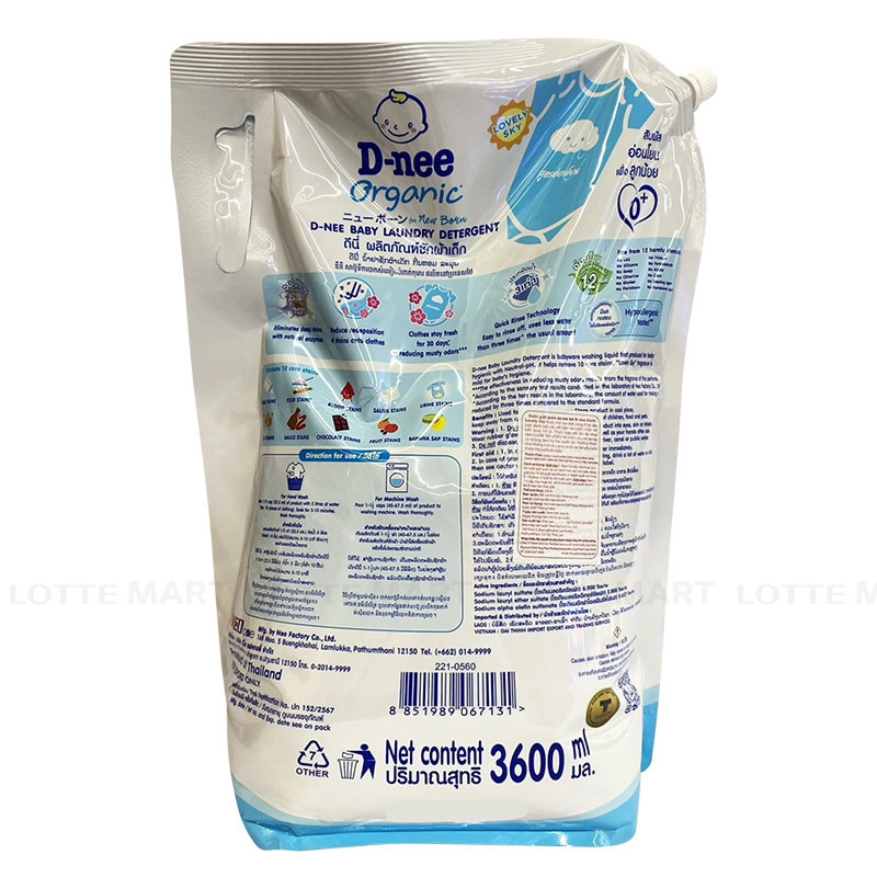 Nước Giặt Quần Áo Em Bé D-nee Lovely Sky được phát triển với công thức giúp đánh bật các vết bẩn và ngăn chúng quay trở lại trên quần áo.